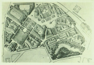 In einer Ausstellung sollen seine Entwurfszeichnugen gezeigt werden. Es handelt sich um Vogelperspektiven der Gesamtplanungen und einzelne Zeichnungen von Platzanlagen.